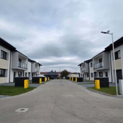 W galerii znajdziesz zarówno zdjęcia z zewnątrz, ukazujące eleganckie elewacje i przemyślany układ zabudowy, jak i detale, które nadają osiedlu charakteru.